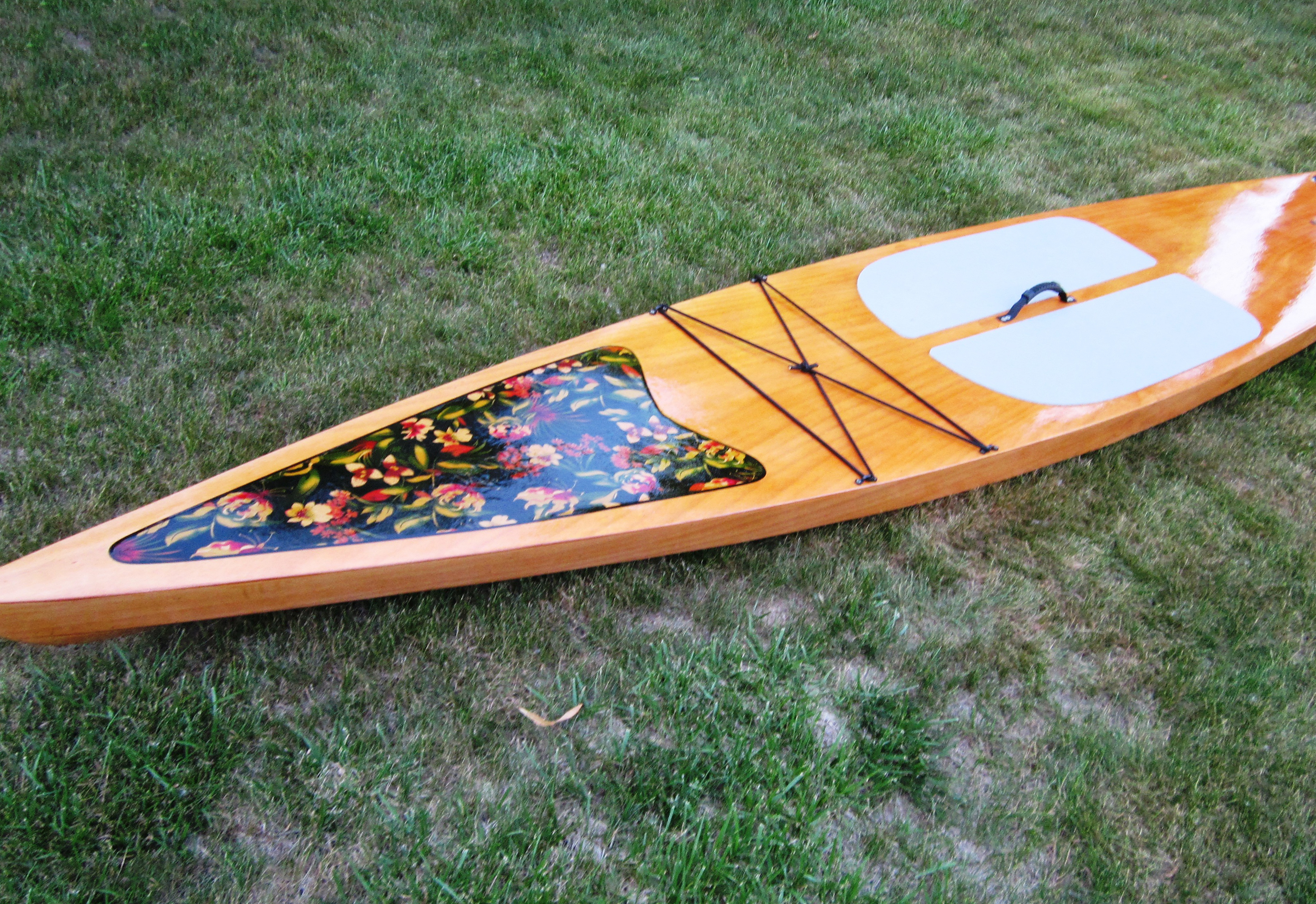 Kayaks can be made with cedar strips, marine plywood, or a combination of both with a plywood hull and stripper deck as shown here. All of these methods make light and responsive boats.